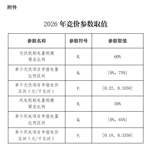竞价参數(shu)分(fēn)爲(wei)风電(dian)咊(he)光伏两类項(xiang)目(mu)分(fēn)别组织开展(zhan)竞价,竞价时申报3段機(jī)製(zhi)電(dian)量、機(jī)製(zhi)价格信(xin)息,申报機(jī)製(zhi)价格需按分(fēn)段單(dan)调递增。本(ben)次竞价未竞得機(jī)製(zhi)電(dian)量的(de)項(xiang)目(mu)参与后(hou)续年(nian)度竞价时,單(dan)箇(ge)項(xiang)目(mu)申报電(dian)量上限(xian)在(zai)规定上限(xian)基础上相应调减,每次调减10箇(ge)百(bai)分(fēn)点。
