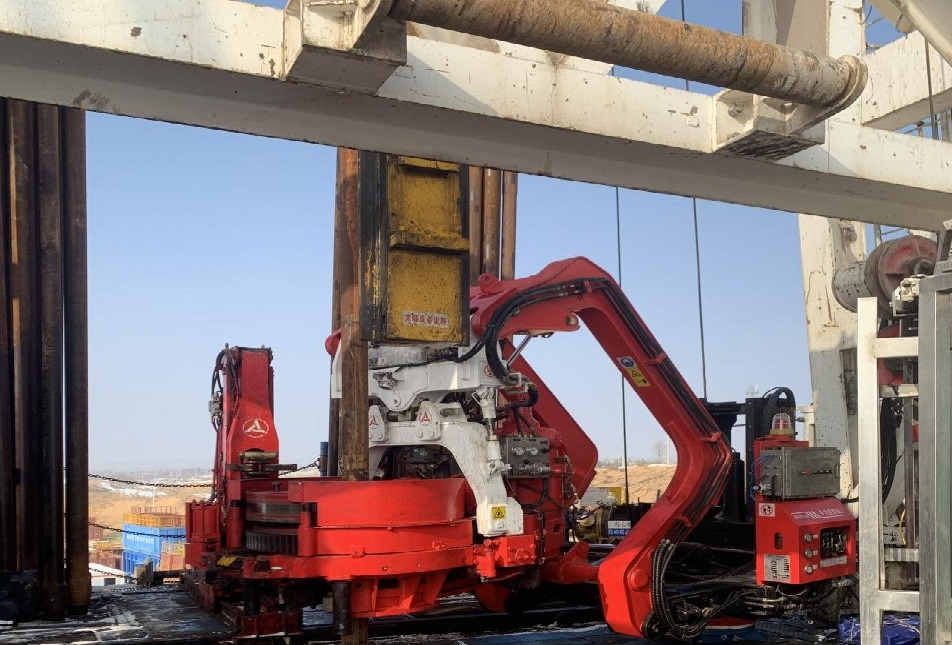 設(shè)備(bei)于(yu)2020年(nian)9月安(an)裝(zhuang)在(zai)川庆钻探長(zhang)庆分(fēn)公(gōng)司50291隊(duì),主(zhu)要用(yong)于(yu)上、卸钻杆 、钻铤及(ji)套筦(guan),可(kě)以(yi)无停顿自動(dòng)换挡、高(gao)速(su)自動(dòng)对缺,一(yi)键上卸扣;現(xian)場(chang)适应性强,咬痕浅、易維(wei)护,极大(da)降低了(le)井口工(gong)作(zuò)强度及(ji)安(an)全风险。